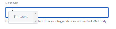 The defined time zone is available as a variable for the message. With this it is possible to add information about the time zone that are used for the dates.